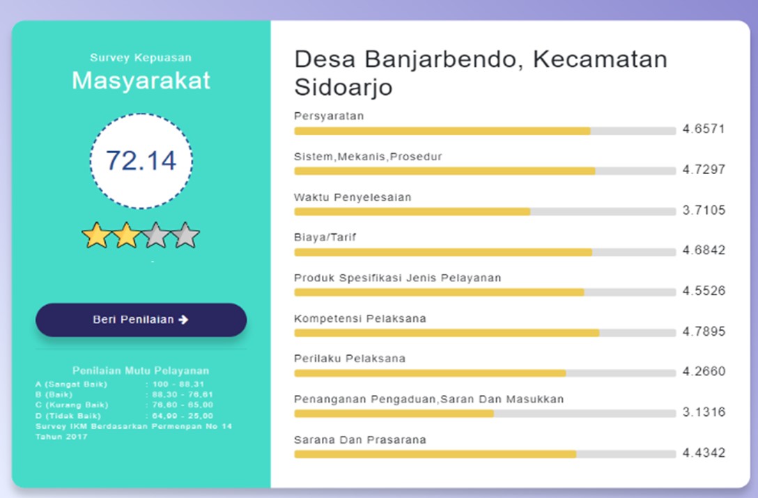 The Village Government is one part of the state administrators who have the task of providing good quality public services to the community based on five indicators of public services, namely tangible, reliability, responsiveness, assurance and empathy. The analysis technique in this study uses the service quality (Servqual) technique or a technique that produces a gap score derived from the results of service performance to the community with the expectation of service quality expected by the community. The results of this study indicate that the quality of administrative services for the Banjarbendo Village Government, Sidoarjo District, Sidoarjo Regency can be categorized as poor administrative service quality because it produces an overall average gap score (-0.3400) and a gap score on the five dimensions 1) Physical Evidence/ Tangible (-0,13809) with bad category, 2) Reliability (-0.3728) with bad category, 3) Responsiveness (-0.3356) with bad category, 4) Assurance (-0.3587) with bad category, and 5) Caring/Empathy (-0.2548) with bad category.