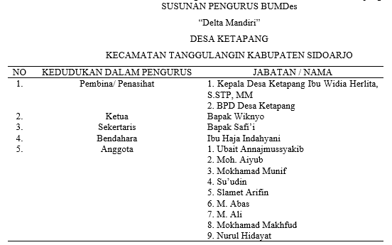 Figure 3. Tabel 3. Struktur Pengurus Badan Usaha Milik Desa di Desa Ketapang Sumber: Data Diolah Penulis Dari PERDES Desa Ketapang, 2024