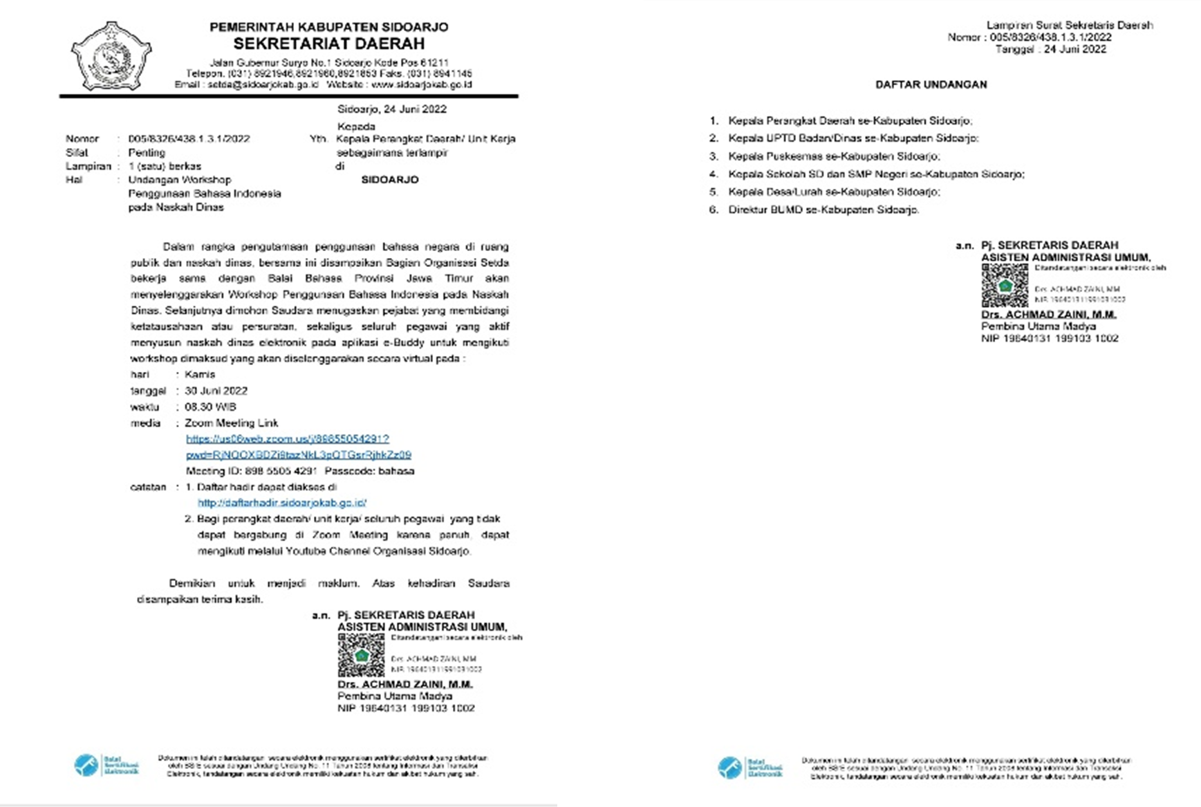 Figure 2. Gambar 2. Undangan Workshop Penggunaan Bahasa Indonesia pada Aplikasi E-Buddy Sumber: diolah oleh Pemerintah Desa Rangkah Kidul, Kecamatan Sidoarjo, Kabupaten Sidoarjo, (2024)