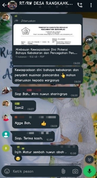 Figure 5. Gambar5.Tangkapan Screenshot percakapan melalui WhatsApp Sumber: diolah oleh Pemerintah Desa Rangkah Kidul, Kecamatan Sidoarjo, Kabupaten Sidoarjo, (2024)